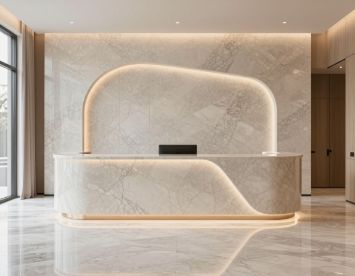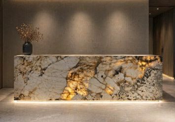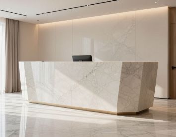 Натуральный мрамор воплощает элегантность и престиж, придавая интерьеру неповторимый шарм и утонченность. Ресепшен стойка из мрамора станет незабываемым элементом первой встречи с клиентами, оставляя у них неизгладимое впечатление.