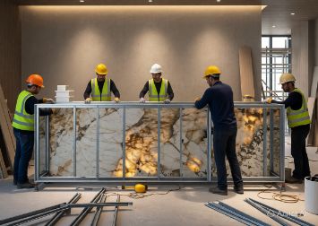 Мрамор как натуральный камень имеет свои особенности. Материал обладает пористой структурой, которая может впитывать красящие пигменты. Поэтому, чтобы предотвратить появление пятен от случайно пролитого кофе, вина или чернил от ручки на вертикальных или горизонтальных панелях ресепшен, поверхность рекомендуется периодически обрабатывать специальными защитными пропитками и мастиками. Вторая особенность — относительная хрупкость кромок. Сильный удар тяжелым металлическим предметом о край стойки может привести к появлению микросколов. Однако при профессиональном монтаже и бережной эксплуатации эта особенность не влияет на впечатляющую эстетику и солидность интерьера.