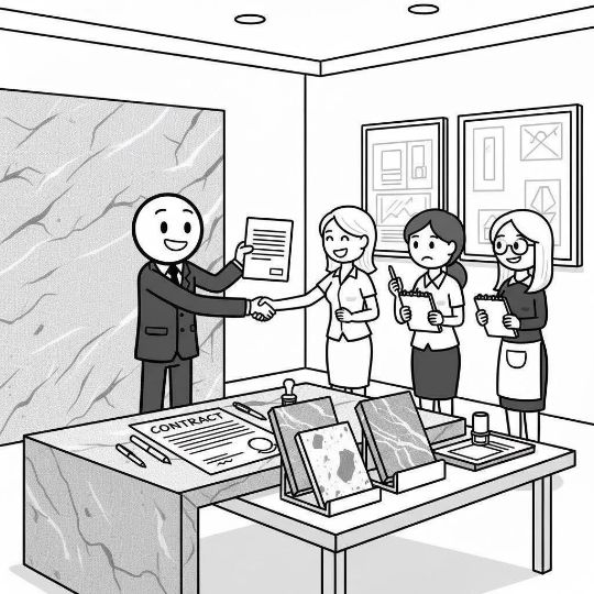 Мы, как специалисты с многолетним опытом работы с камнем поможем подобрать оптимальный камень не только по визуальному ряду, но и по типу обработки. Мы можем предложить аналоги дорогих камней. Мы знаем, как важен срок в ремонте, особенно в коммерческих помещениях. Поэтому при правильных подготовительных работах срок монтажа проходит значительно быстрее. А параллельная работа на объекте с другими подрядчиками позволяет рационально выстроить график работ.